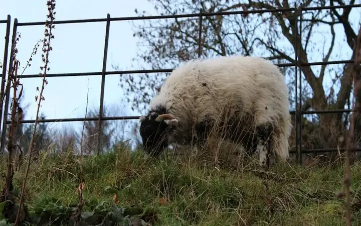 قد يبدو الكبش وكأنه يحدق إليك مباشرة، لكن عينيه الموضوعتين على جانبي الرأس وحدقتيه الأفقيتين تمنحانه رؤية واسعة قريبة من مستوى الأرض، مصممة لرصد الخطر عبر الحقل.