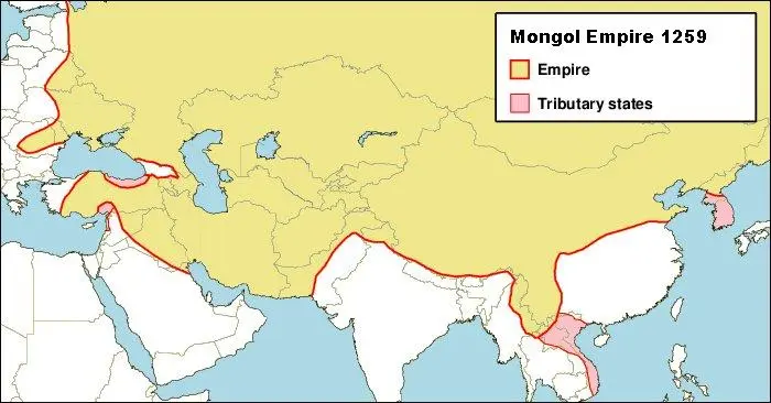 عندما كانت قوية، كانت إمبراطورية عالمية تمتد عبر أوروبا وآسيا، وكانت أيضًا الدولة التي تتمتع بأكبر مساحة متجاورة في التاريخ. في ذلك الوقت، عندما كانت القوة العسكرية المنغولية في ذروة ازدهارها، تم إطلاق ثلاث حملات مغولية غربية واسعة النطاق. بعد ذلك، بين السنة التاسعة لمينغي (1259) والسنة الثانية لدا دا (1309)، بلغ الحد الأقصى لأراضي نظام الإمبراطورية المغولية حوالي 24 مليون كيلومتر مربع (أحد التقديرات هو 34.5 مليون كيلومتر مربع). ومع ذلك، منذ وفاة مونكو عام 1259، اندلعت الحرب الأهلية على منصب الخان الأكبر، مما تسبب في عدة انقسامات داخل الإمبراطورية بل وأدى إلى انهيارها. بعد أن دمر المغول أسرة جين وأقاموا حكمهم في السهول الوسطى، أسسوا أسرة يوان في عام 1271. خلال نفس الفترة، كانت هناك أيضًا الخانات الأربعة الرئيسية في الغرب. في عام 1368، تم تدمير أسرة يوان على يد أسرة مينغ التي أسسها هان تشو يوان تشانغ. تم طرد القوات المتبقية من أسرة يوان شمال سور الصين العظيم ودخلت أسرة يوان الشمالية، وتراجع تأثيرها على القارة الأوراسية تدريجيًا.