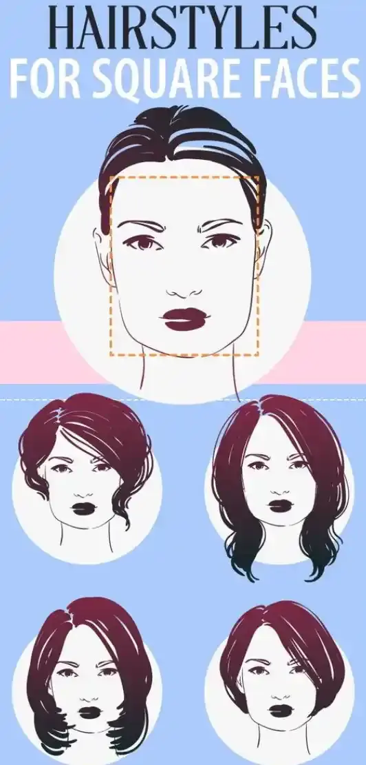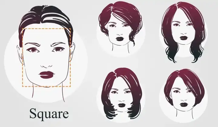 إذ كان وجهك مربع الشكل ستلاحظين بروز عظام فكك بشكل واضح، يفضل لصاحبات الوجه المربع إطالة شعرهم ليظهروا بشكل أنثوي. تصفيف الشعر الكيرلي يناسب هذا الوجه بشكل كبير وأيضا غرة كاملة جانبية تضفي مظهرا جذابا علي وجههم.
