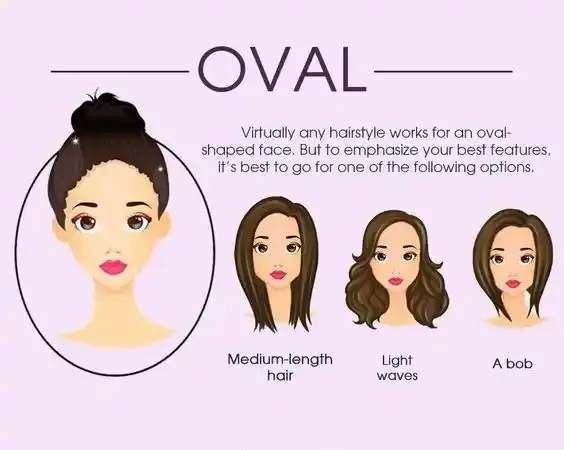 شكل الوجه البيضاوي يعتبر متناسقا جدا، أحيانا يتساوى فيه الطول مع العرض وفي أحيان أخرى يطول طوله عن عرضه. أحيانا تبرز عظام الوجنة "الخد" أو عظام الفك ولكن ليس بشكل كبير. يعتبر أصحاب الوجه البيضاوي من المحظوظين حيث يلائم وجههم العديد من قصات الشعر.