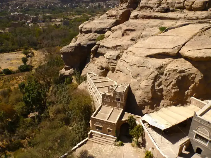 يقع القصر الحجري على بعد حوالي تسعة أميال من العاصمة صنعاء في وادي الظهر الذي يبدو وكأنه من عالم آخر، ويعود تاريخ دار الحجر إلى عشرينيات القرن الماضي، وتم تشييدها كمقر إقامة صيفي للزعيم الروحي الإسلامي والعاهل اليمني يحيى محمد حميد الدين. لكنه أقيم فوق هيكل بني على العمود الصخري عام 1786 من قبل العالم الإسلامي الإمام منصور علي بن مهدي عباس.