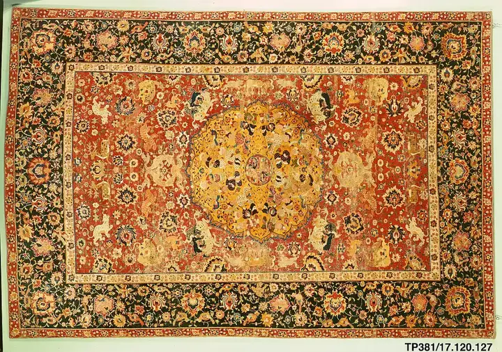 يُعزى تطوير السجاد الفارسي إلى حد كبير إلى طريق الحرير، وهو طريق تجاري واسع يربط الحضارات القديمة عبر أوراسيا (أوروبا وآسيا). نتج عن هذا إحضار تقنية نسج الحرير الصينية إلى بلاد فارس، حيث تطورت في النهاية إلى السجاد المفصل الغني الذي نعرفه اليوم. سمح هذا أيضًا للسجاد الصيني ذو الزخارف والتصاميم الثقافية بالانتشار في جميع أنحاء العالم. . تحمل هذه الأعمال الفنية المصنوعة يدويًا اندماج الثقافات الشرقية والغربية التي جسدت تبادلات طريق الحرير لآلاف السنين.
