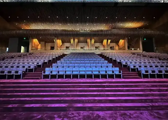تحتوي قاعة مرايا في الداخل على قاعة رئيسية بها 500 مقعدًا، إلى جانب خمسة صفوف بمساحة تصل إلى 60 ضيفًا إضافيًا، كما توجد خلف المسرح نافذة قابلة للسحب مساحتها 800 متر مربع، يمكن فتح تلك النافذة للكشف عن التكوينات الصخرية التي تضيء في الليل وتنتج انعكاسات ملونة. تشمل المرافق الأخرى شرفة على السطح ومركز مؤتمرات ومساحة عرض (بما في ذلك تركيب «غرفة لا متناهية» بواسطة المهندس "يايوي كوساما".