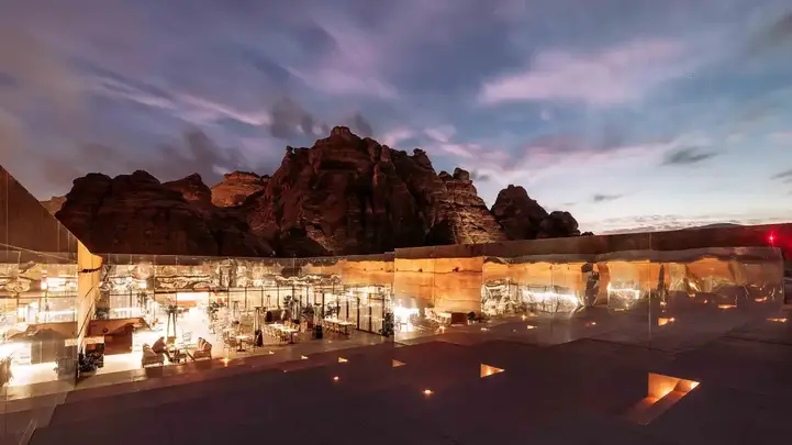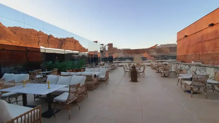 تقع قاعة مرايا الاجتماعية على سطح قاعة مرايا المطلة على مدينة العلا بمظهرها الخلاب، إنه منظر طبيعي يأسر محبي الطبيعة والفنانين والمهندسين المعماريين مبما لها من تراث حضارة النبطيين وما بها من تصميم حداثي.