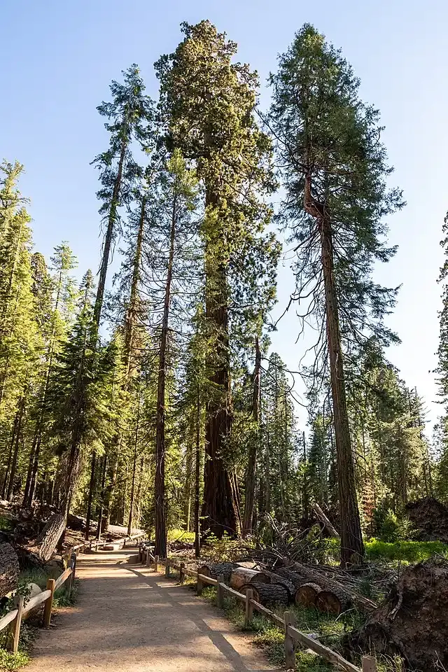 بالعودة إلى يوسمايت، نجد أكبر الكائنات الحية في العالم هناك. حيث تهيمن مئات أشجار السيكويا العملاقة التي يتراوح عمرها بين 1500 و1800 عام على بستان ماريبوسا. قد تكون أشجار الخشب الأحمر في شمال كاليفورنيا أطول من اشجار السيكوبا ، لكن جذوع أشجار السيكويا أكبر، وتحتفظ بالكثير من محيطها مع تسلق الأشجار. من حيث الكتلة الحية الفعلية، إن شجرة الجنرال جرانت، هي ثاني أكبر شجرة في العالم بعد شجرة الجنرال شيرمان في حديقة سيكويا الوطنية القريبة. تتمتع أشجار سيكويا بنعمة الخلاص من منشار الحطاب. فهي تنكسر إلى قطع صغيرة عند قطعها. لذا يمكن استخدامها في تسقيف الأسقف وأعمدة السياج، وبفضل لحائها السميك، تقاوم أشجار السيكويا الحشرات الغازية وحرائق الغابات. ومثلها كمثل أبناء عمومتها، أشجار الخشب الأحمر، فإن نقطة الضعف الرئيسية لأشجار السيكويا هي نظامها الجذري الضحل، لذلك في الرياح العاتية، يمكن أن تطير. في عام 2020 في جبال سييرا نيفادا، اشتعلت النيران في آلاف أشجار السيكويا. في عام 2021، لاحظ ناثان ستيفنسون، عالم البيئة في هيئة الجيولوجيا الأمريكية: "تواجه أشجار السيكويا تهديدات لم تواجهها حتى قبل سبع سنوات. ومن المرجح أن تزداد هذه التهديدات سوءًا". أضعفت حرائق الغابات والجفاف وغزو خنفساء لحاء الأرز المدمر هذه الفراشات الملكية العملاقة.
