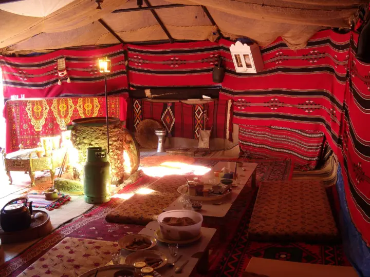 على الرغم من التحديث، يواصل البدو نسج واستخدام الخيام كوسيلة لتكريم تراثهم. تلعب النساء دورًا مهمًا في هذا التقليد، حيث يغزلن القماش يدويًا باستخدام تقنيات قديمة توارثتها الأجيال. وهذه الحرفة ليست مهارة عملية فحسب، بل هي أيضًا شكل فني، مع أنماط وتصميمات معقدة تحكي قصصًا عن نسبهم وبيئتهم. تتميز الاحتفالات مثل حفلات الزفاف والمهرجانات غالبًا بخيام تقليدية، حيث تتجمع العائلات لمشاركة القصص والموسيقا والطعام. تعمل هذه الأحداث كجسر يربط الأجيال الأصغر بجذورها ويعزز الروابط المجتمعية.
