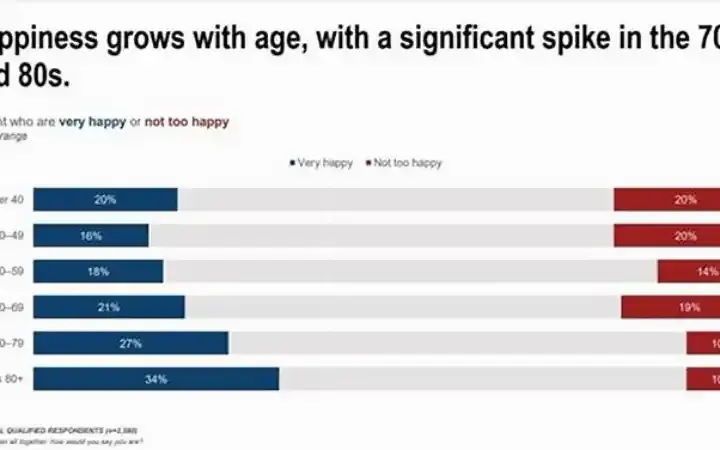 باختصار، غالباً ما يشعر الأفراد في السبعينيات من العمر بإحساس متزايد بالسعادة والرضا عن الحياة، متأثرين بتحوّل في الأولويات، وتجارب الحياة المتراكمة، والتركيز على الاتصالات ذات المغزى والرفاهية الشخصية.