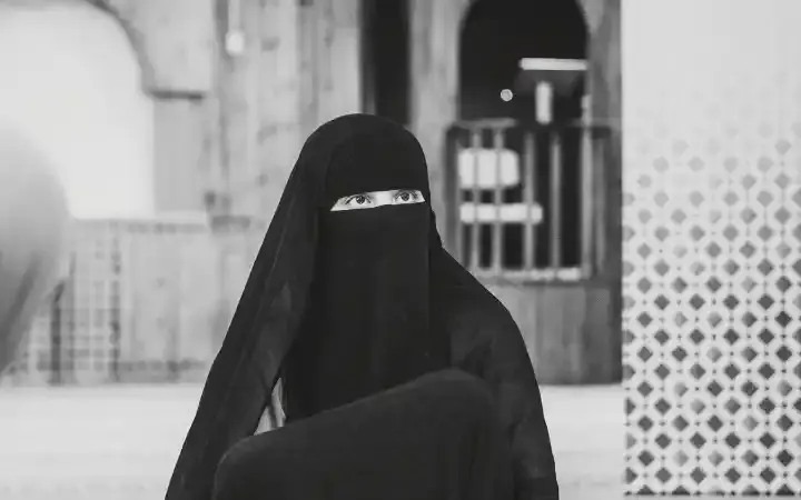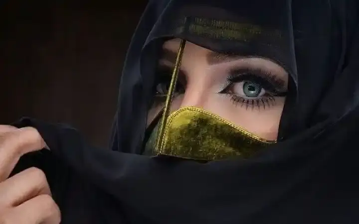 غالبًا ما يتم ارتداؤه مع العباءة، وهو حجاب يغطي الوجه بالكامل ولا يترك سوى فتحة ضيقة حول العينين. أصل الاسم يأتي من كلمة باكارة التي تعني "الانشقاق". ترتدي النساء العربيات أيضًا نصف نقاب يكشف عن نصف الأنف إلى جانب العينين وجزء من جبهة المرأة. يتكون النقاب عادةً من شاش أسود مزدوج الطبقة أو قطعة قماش، مع أقسام علوية وسفلية متصلة حول العينين. يمتد النقاب عادةً أسفل الرقبة مباشرةً، على الرغم من أنه قد يمتد أحيانًا إلى صدر المرأة. وعلى الرغم من أن النقاب يأتي تقليديًا باللونين الأسود والأزرق بدون أي إكسسوارات، إلا أنه في الأيام الحديثة، يُصنع النقاب من أقمشة مختلفة، وتتميز بأنواع مختلفة من الزخارف. على سبيل المثال، تتميز بعض النقابات بشعارات وأنماط شهيرة مثل شعار لويس فيتون المميز. في أوقات أخرى، تم تقديم التطريز الزخرفي والزخارف التي يتم كيها لتسليط الضوء على مناطق مثل فتحة العين أو خط الذقن أو الحافة السفلية للقماش.