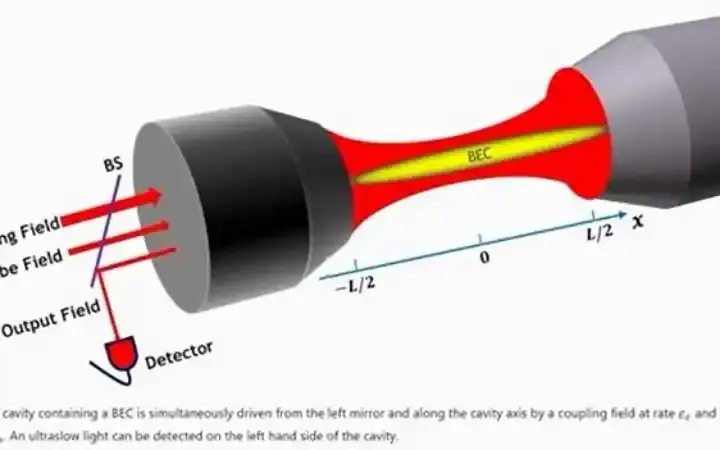 عندما يدخل الضوء إلى مُكثَّف بوز-أينشتاين، فإن التفاعلات بين الفوتونات والذرات فائقة البرودة تبطئ الضوء بشكل كبير. يتيح ترابط الدالة الموجية الذرية اقتراناً قوياً بين الضوء والمادة، مما يُقلِّل بشكل فعّال من سرعة الضوء.