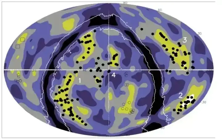 قام هانز بوهرينغر من معهد ماكس بلانك للفيزياء خارج الأرض بتنسيق الجهود بالتعاون مع معهد ماكس بلانك للفيزياء وفرق في إسبانيا وجنوب إفريقيا. واعتمد عملهم على مسح القمر الصناعي ROSAT للأشعة السينية، والذي حدد مجموعات المجرات من خلال الكشف عن الإشعاع النشط الذي تنبعث منه هذه المجموعات الضخمة. سمحت هذه البيانات للباحثين ببناء خريطة ثلاثية الأبعاد لمحيطنا الكوني. يوضح بوهرينغر: "إذا نظرت إلى توزيع مجموعات المجرات في السماء في غلاف كروي بمسافة تتراوح من 416 إلى 826 مليون سنة ضوئية، فستلاحظ على الفور بنية ضخمة تمتد من خطوط العرض الشمالية العالية إلى الطرف الجنوبي تقريبًا من السماء". من خلال تتبع موقع كل مجموعة في الفضاء، حدد فريقه كيف تنتشر المادة في أنماط دوامة من المجرات.