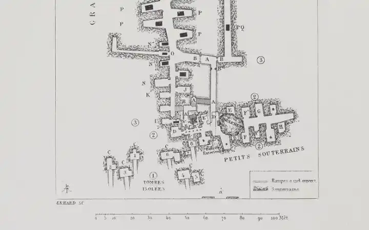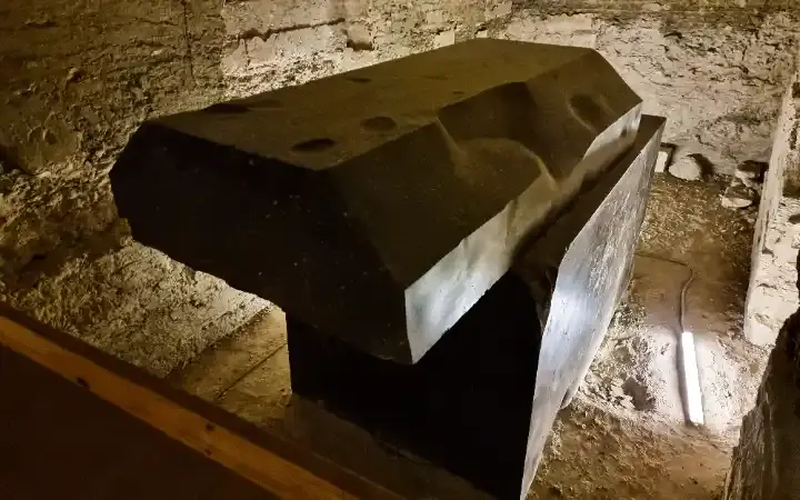 في مرحلة معينة، سيتجاوز الضغط داخل الصندوق وزن الغطاء ويفتحه، مما يؤدي إلى إطلاق الغاز. ومع ذلك، عندما أعيد اكتشاف السراديب في عام 1850، تم رسم بعض الرسومات للداخل في ذلك الوقت أو بعد ذلك بفترة قصيرة. الصورة التالية واحدة من تلك الرسومات. الجانب المثير للاهتمام الذي لا يمكن تفويته في هذه الصورة هو كومة الحجارة المكدسة فوق غطاء التابوت. يبدو أن شخصًا ما قد يكون قد استخدم الأحجار لمواجهة الضغط داخل الصندوق بإضافة وزن إضافي على الغطاء، مما يمدد فترة الضغط على بلورات الكوارتز.