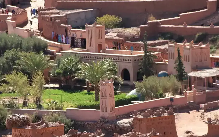 تبعد قصبة آيت بن حدو حوالي 30 كيلومترًا عن ورزازات، وهي واحدة من أجمل القصور الصحراوية في المغرب، حيث يعود تاريخها إلى القرن الـ17. تم تصنيفها ضمن قائمة التراث العالمي لليونسكو بفضل تصميمها المعماري الفريد المبني من الطين، والذي يعكس روح الثقافة الأمازيغية.