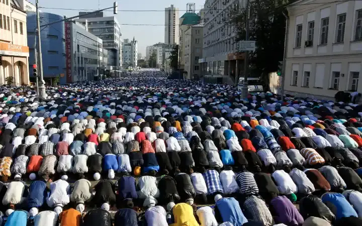 على الرغم من عدم وجود أرقام دقيقة حول عدد المسلمين المقيمين في سانت بطرسبرغ، إلا أن احتفالات عيد الفطر العام الماضي، والتي تُصادف نهاية صيام شهر رمضان، استقطبت 42 ألف مصلٍّ إلى المسجدين الرئيسيين في المدينة، وفقًا لوزارة الداخلية. وكما يحدث غالبًا في الأعياد الكبرى، لم يتمكن معظمهم من الدخول إلى المسجدين، واضطروا إلى المشاركة في الشعائر من الشارع. وقد كتب بعض علماء المسلمين أن بإمكان سكان المناطق الشمالية التخلي عن شعيرة الصيام، التي يُقصد بها تقوية الإرادة والسيطرة على الشهوات. وكتب الباحث التتري الروسي موسى بيجييف في نصٍّ عن الصيام: "وفقًا لتعليمات القرآن الكريم، فإن الصيام في المناطق [بالقرب من القطبين] ليس واجبًا أبدًا، لأنه مُقررٌ فقط لعددٍ مُحددٍ من الأيام، أي في الأماكن التي يكون فيها الليل والنهار متساويين في الطول". وتشير مصادر دينية أخرى إلى أن المسلمين الذين يعيشون في أقصى الشمال يمكنهم صيام رمضان وفقًا لوقت شروق الشمس وغروبها في مكة المكرمة أو أقرب مدينة إسلامية. في كثير من الحالات، لا يصوم من يقومون بأعمالٍ يدويةٍ شاقة لأسبابٍ تتعلق بالسلامة. كثيرٌ من المسلمين في سانت بطرسبرغ هم مهاجرون من جمهوريات الاتحاد السوفيتي السابق في آسيا الوسطى والقوقاز، يعملون في البناء وغيرها من الصناعات منخفضة الأجر. وافقت وزارة العمل على حصةٍ قدرها 164,000 عاملٍ مهاجرٍ في سانت بطرسبرغ عام 2014، ولكن من المرجح أن يكون العدد الفعلي أعلى من ذلك بكثير.
