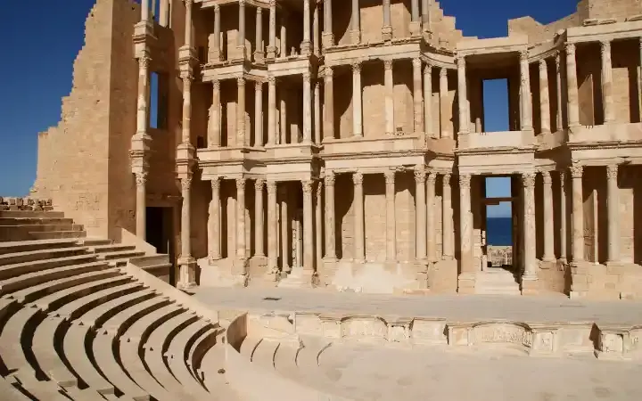 في صبراتة، حيث يلتقي المتوسط بزرقة السماء، ترتفع آثار رومانية تعانق الأفق وتحكي قصص البحارة والتجار والفلاسفة. مدينة تهمس لك بأسرارها كلما تجولت في مسارحها ومعابدها، وتدعوك لتغوص في تفاصيلها الدقيقة كما يغوص الغواصون في أعماق بحرها الهادئ.