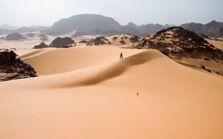 في أقصى الجنوب الغربي من ليبيا، تقع تدرارت أكاكوس، تلك الأعجوبة الجيولوجية التي تأسر الزائر بجمالها الأخّاذ وعمقها التاريخي. ليست مجرد جبال صخرية متناثرة في قلب الصحراء الكبرى، بل هي متحف مفتوح يعرض حياة الإنسان القديم بأسلوب بصري نابض بالحياة. في كل منحوتة صخرية وكل نقشة على الجدران، تختبئ قصة من قصص حضارات ما قبل التاريخ التي سكنت هذه الأرض قبل آلاف السنين. الرياح والصحراء والزمن شكّلوا سويًا هذه اللوحة الطبيعية الفريدة، التي تحفظ أسرار الأجيال الغابرة. تقف أمام الجبال وكأنها تتحدث إليك، تخبرك عن الصيد، والرعي، والطقوس، وعن التغيرات المناخية التي حولت الواحات الخضراء إلى كثبان رملية. تدرارت أكاكوس ليست مكانًا تزوره فحسب، بل تجربة تعيشها بكل حواسك. في هذا المكان لا تكتفي برؤية الزمن، بل تشعر أنك تغوص فيه، وكأنك تسافر إلى الماضي دون أن تغادر الحاضر.