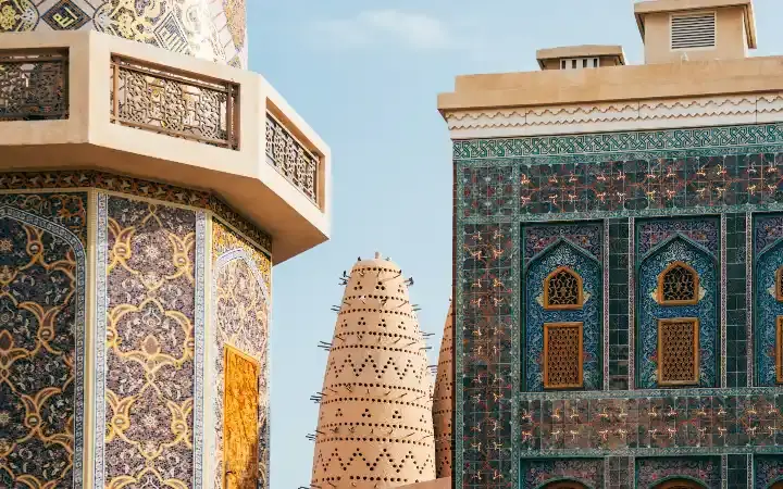 ابدأ جولتك بزيارة مسجد كتارا المميز بتصاميمه الزرقاء والذهبية، ثم المسجد الذهبي الصغير الذي يلمع تحت أشعة الشمس. بعد ذلك، تجول بين الأزقة المزينة باللوحات الجدارية والنوافير الجميلة.