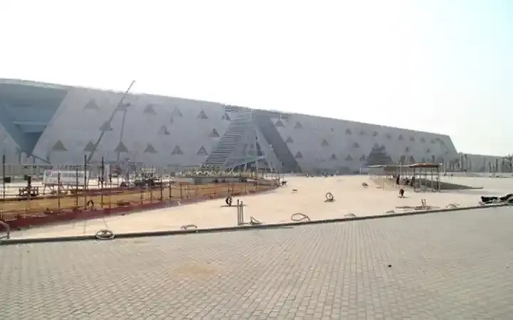 المتحف المصري الكبير: الواجهة الخارجية قيد الإنشاء في عام 2019.