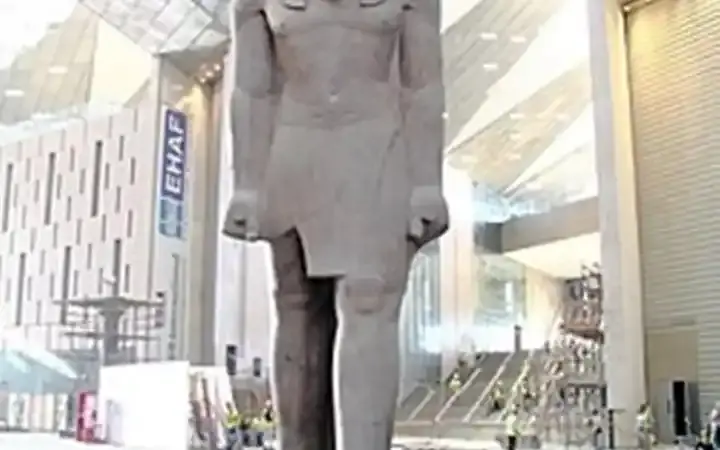 تمثال رمسيس الثاني في بهو المتحف المصري الكبير.