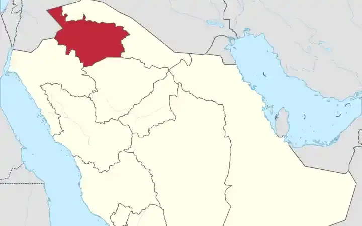 خارطة تبين منطقة الجوف في السعودية
