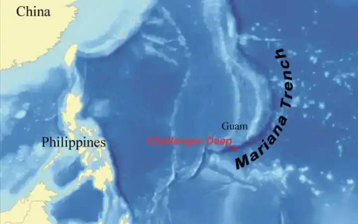 يقع خندق ماريانا في المحيط الهادئ، على بعد حوالي 200 كم شرق جزر ماريانا، بالقرب من غوام، وهو أعمق نقطة معروفة في جميع المحيطات على كوكبنا. يبلغ عمقه حوالي 10984 مترًا، وهو بارد جداً أيضاً، حيث تنخفض درجات الحرارة فيه إلى حوالي درجة سلزيوس واحدة. أما بالنسبة للضغط، فهو أكثر من 1000 ضعف الضغط الجوّي (الذي يتعرض له الغلاف الجوي عند مستوى سطح البحر).