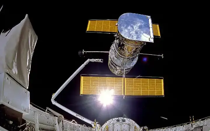 في 24 أبريل/نيسان 1990، انطلق مكوك الفضاء ديسكفري في السماء وهو يحمل هابل مطويًا داخل حاوية الشحن. وصف أحد مُعلّقي ناسا التلسكوب بأنه "نافذة جديدة على الكون"، رافعًا سقف التوقعات إلى عنان السماء. لكن سرعان ما تلاشت البهجة عندما اكتشف المهندسون عيبًا صغيرًا في المرآة جعل الصور المبكرة ضبابية بشكل مُحبط. جاء الإنقاذ في ديسمبر 1993، عندما نفّذ رواد الفضاء أولى مهمات الصيانة المعقدة الخمس. ركّبوا بصريات تصحيحية - "عدسات لاصقة" بصرية - وحدّثوا كاميرات هابل وأجهزته الإلكترونية. أعاد هذا الإصلاح الناجح رؤية التلسكوب، ومهّد الطريق لثلاثة عقود من التقدم العلمي. لقد ألهمت صور هابل المذهلة الناس في جميع أنحاء العالم، وكشفت البيانات الكامنة وراء تلك الصور عن مفاجآت حول كل شيء، من المجرات المبكرة إلى الكواكب في نظامنا الشمسي