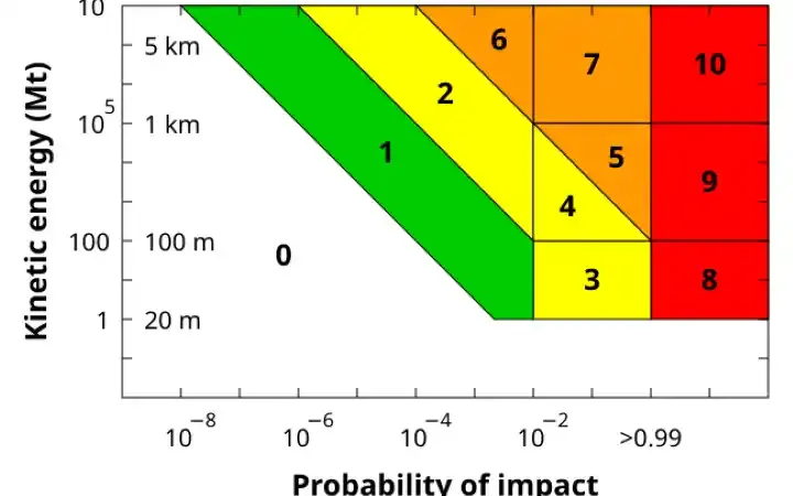 مقياس تورينو لخطورة الاصطدام بالأرض، يأخذ بنظر الاعتبار احتمال الاصطدام وطاقة الكويكب