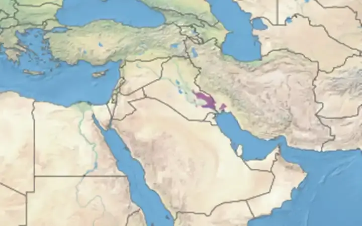 موقع الأهوار في بلاد ما بين النهرين (مستنقعات دجلة والفرات الملحية الرسوبية).