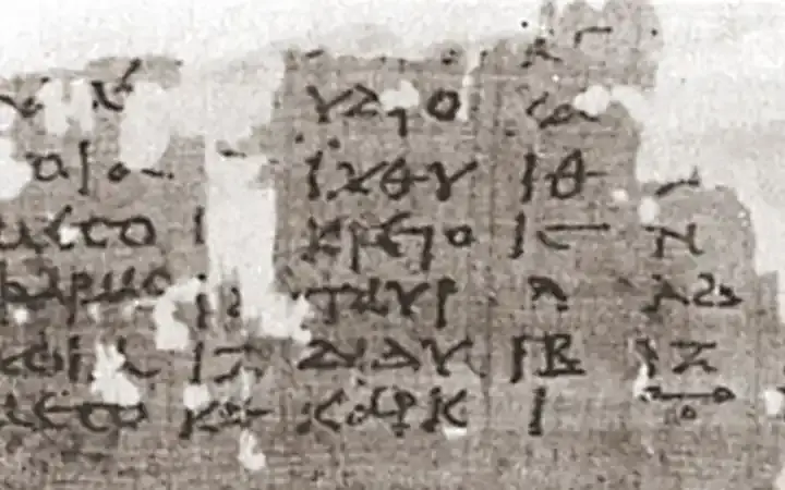 مثال على الرمز اليوناني القديم للصفر (الزاوية اليمنى السفلى) من بردية من القرن الثاني الميلادي.