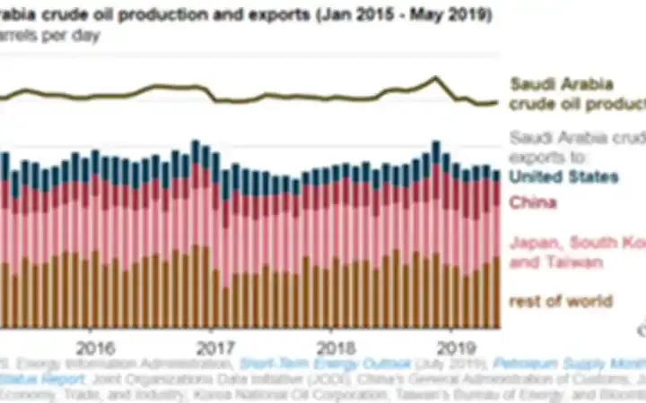 صادرات النفط الخام السعودية حسب الوجهة، 2015-2019
