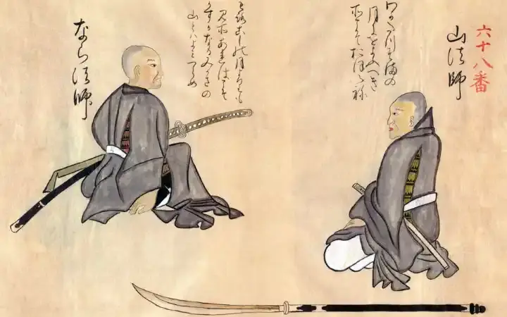 رسم يبين محاربي نينجا يرتديان الدروع تحت ملابسهما. الرسم يعود إلى عام 1770 تقريبًا