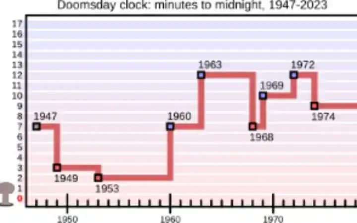 في بداية 2025، ضُبطت ساعة نهاية العالم على منتصف الليل إلا 89 ثانية