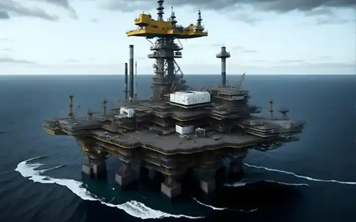 منصة حفر بترول في البحر.