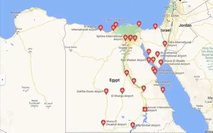 تضم شبكة مطارات مصر مطارات دولية وإقليمية، بما في ذلك القاهرة والإسكندرية والغردقة وشرم الشيخ والأقصر وأسوان، بالإضافة إلى مطار سفنكس الدولي الذي افتُتح حديثاً. تدعم هذه الشبكة السياحة والأعمال والسفر لأغراض الحج. ومع ذلك، تعاني العديد من المطارات من محدودية الطاقة الاستيعابية، وعدم كفاءة الإجراءات الأمنية، ونقص التحديث التكنولوجي.