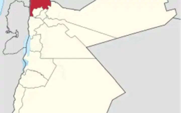 موقع محافظة إربد في الأردن؛ حيث تقع مدينة إربد