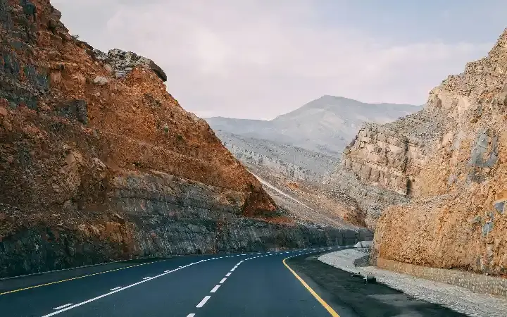 على الطرف الآخر من البلاد شمالًا، تبدأ الطبيعة بتغيير ثوبها من الصحاري الواسعة إلى جبال الحجر الصلدة، وتحديدًا في إمارة رأس الخيمة. هنا، تبرز القمم الجبلية الشاهقة والتكوينات الصخرية القديمة التي تروي قصص التكوين الجيولوجي لشبه الجزيرة العربية.