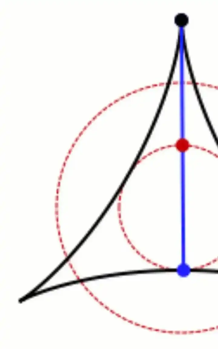 مسألة كاكييا – الإبرة باللون الأزرق ومسارها بالأسود