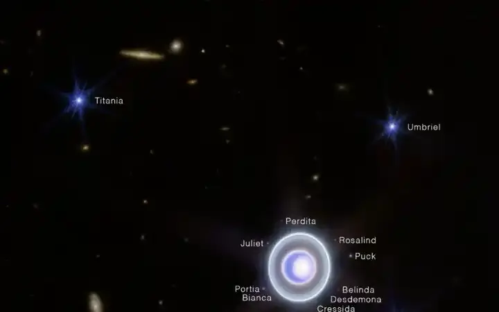 في فبراير 2025، اكتشف علماء الفلك باستخدام تلسكوب جيمس ويب الفضائي التابع لناسا قمرًا لم يكن معروفًا من قبل يدور حول أورانوس. عُرف هذا القمر الصغير مؤقتًا بـ S/2025 U1، ويبلغ عرضه ستة أميال (10 كيلومترات) فقط - صغير جدًا وخافت لدرجة أنه لم يُرصد من قِبل جميع البعثات السابقة، بما في ذلك التحليق التاريخي لمركبة فوييجر 2 عام 1986. تم هذا الاكتشاف من قِبل فريق بقيادة علماء من معهد ساوث ويست للأبحاث (SwRI)، والذين استخدموا كاميرا الأشعة تحت الحمراء القريبة (NIRCam) التابعة لتلسكوب جيمس ويب الفضائي لالتقاط عشر صور طويلة التعريض لأورانوس. كشفت هذه الملاحظات عالية الدقة عن وجود القمر بين مداري أوفيليا وبيانكا، وهما قمران داخليان معروفان لأورانوس. ومع هذه الإضافة، يرتفع العدد الإجمالي لأقمار أورانوس المعروفة إلى 29 قمرًا. إن مدار S/2025 U1 شبه دائري، ويقع على بُعد 35,000 ميل (56,000 كيلومتر) فقط من مركز أورانوس - وهو مسار ضيق ومستقر يُشير إلى أن القمر قد تشكّل على الأرجح في موقعه الحالي. تُبرز بصمته الخافتة وحجمه الضئيل الحساسية الاستثنائية لتلسكوب جيمس ويب، الذي يواصل دفع حدود ما يُمكننا اكتشافه في النظام الشمسي الخارجي.