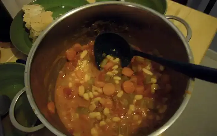 - الخضراوات: تشمل الإضافات الشائعة الجزر والكرفس والبصل والطماطم. تُفرم هذه المكونات وتُقلى قبل طهيها على نار هادئة مع الفاصوليا، مما يُضفي عليها حلاوةً ونكهةً ترابية.