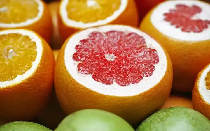 الجريب فروت من الفواكه الحمضية لذا؛ فهو غني بفيتامين C الذي يدعم مناعة الجسم وهو أيضا غني بمضادات الأكسدة التي تقلل من حدوث التهابات الجسم. الجريب فروت من الفواكه منخفضة السعرات الحرارية لذا؛ فهم يعزز خسارة الوزن كما أنه غني بالألياف وبالتالي يعزز الشعور بالشبع والأمتلاء. تساعد الألياف في الجريب فروت أيضا على تحسين عمليات الهضم في الجسم.