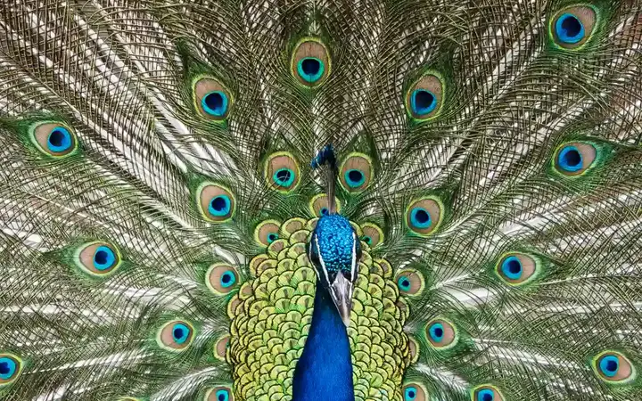الألوان الزاهية لريش ذيل الطاووس: لوحة الطبيعة