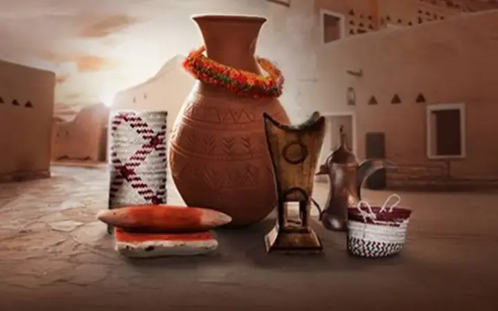 • حرفيين سعوديين محليين يمثلون تقاليد الحرف الإقليمية (النسيج، وصناعة السلال، والتطريز، والأعمال المعدنية، والفخار).