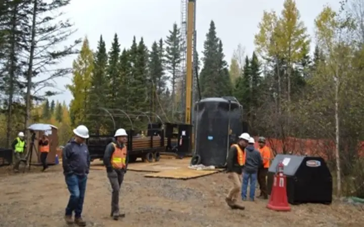 منصة حفر وهي على وشك البدء في حفر البئر الثالث لـ Pulsar Helium بالقرب من مدينة بابيت بولاية مينيسوتا في 16 تشرين الأول 2025. وأكدت الشركة وجود غاز الهيليوم محصورًا تحت السطح في شمال شرق ولاية مينيسوتا قبل عامين