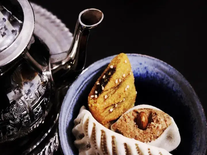3. كرّر الفكرة عبر الصينية، لا على كل قطعة بسكويت. تبدو الصينية أفضل عندما تحمل بضع قطع بوضوح دور البطولة، فيما تسندها القطع الأخرى. وهذا يخلق إحساسًا بالوفرة من دون أن يتحول كل ما على الصينية إلى ضجيج بصري.