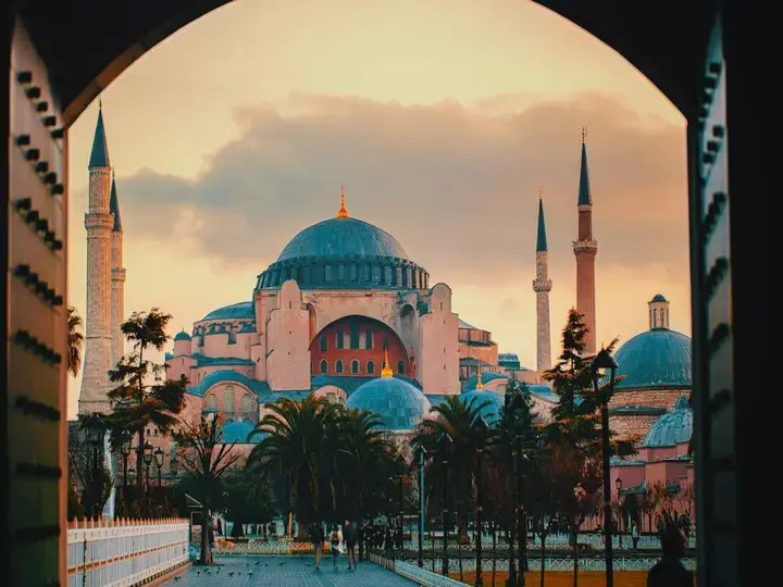 وعند نحو منتصف عبور البوسفور، تكون هذه هي اللحظة التي يبدو فيها المشهد نفسه مختلفًا. فالقبة لم تعد مجرد عنصر «بيزنطي»، والمآذن لم تعد مجرد عنصر «عثماني». ما تنظر إليه هو كاتدرائية من القرن السادس تحولت إلى مسجد إمبراطوري في القرن الخامس عشر، ثم أُعيد تقديمها متحفًا جمهوريًا في 1935، ثم استُعيدت صفتها مسجدًا في 2020، وكل ذلك لا يزال قائمًا في خطّ هيئة واحد. ولهذا يستطيع منظرها أن يوقف حديثًا دائرًا.