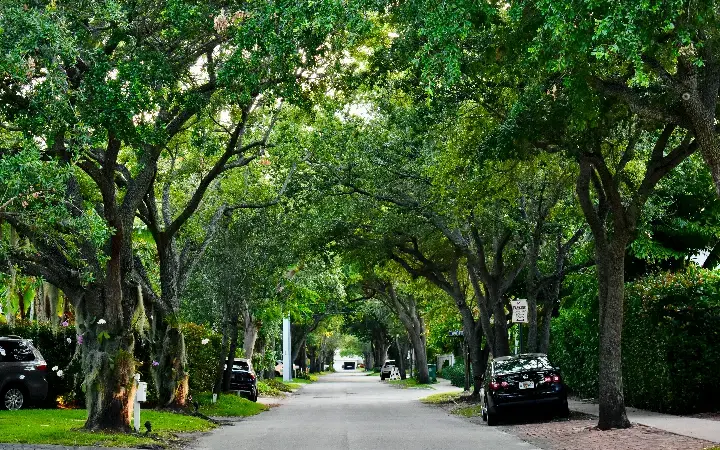 انظر إلى الرصف، لا إلى الأوراق وحدها. فالسؤال المهم هو ما إذا كانت المظلة الشجرية تمتد بما يكفي فوق الطريق والرصيف كي تمنع تلك الأسطح من التحمل الزائد للحرارة. هنا تعمل البنية التحتية للتبريد.