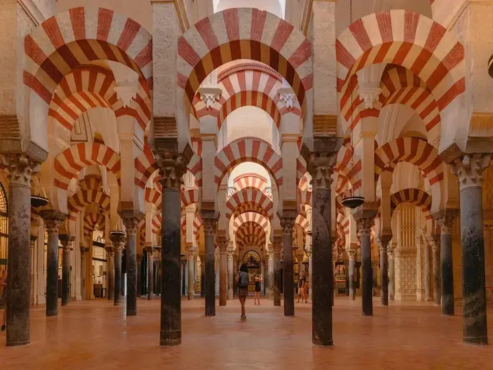 إذا أردت مثالًا مرجعيًا واحدًا، فابدأ بالجامع الكبير في قرطبة. فقد شُرع في بنائه في القرن الثامن في عهد الأمويين في الأندلس، ثم توسّع مع مرور الزمن، وهو المبنى الذي يعلّم كثيرًا من الناظرين كيف يرون القوس الحذوي بوصفه أكثر من مجرد عنصر زخرفي منفرد.