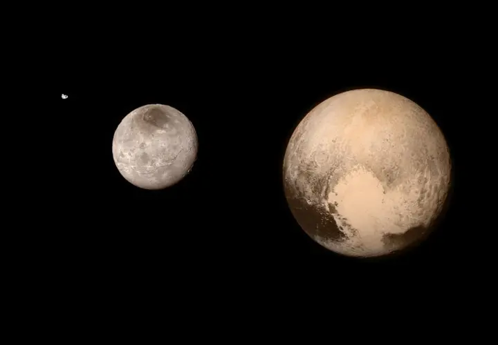 بلوتو لديه خمسة أقمار - "بطاطس فضائية مرحة المظهر" كما يسميها سينجر - وأكبرها عملاق. تم اكتشاف شارون في عام 1978 عندما لاحظ العلماء أن بلوتو يبدو أنه يستطيل كل ستة أيام. حدث التغيير الواضح عندما ظهرت كتلة شارون خارج نطاق رؤية بلوتو. يبلغ حجم شارون نصف حجم بلوتو. القمر هو الأقرب في الحجم إلى والده من بين جميع أزواج القمر والكواكب في نظامنا الشمسي. القمر ثقيل للغاية لدرجة أنه يؤثر على دوران بلوتو. في الواقع، يقع محور دوران بلوتو في مكان ما بين الكوكب القزم وشارون. يشير العلماء أحيانًا إلى شارون وبلوتو باعتبارهما نظامًا كوكبيًا قزمًا مزدوجًا.