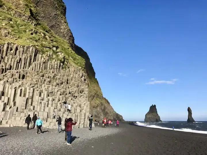 أحد أبرز معالم المنطقة هو شاطئ "Reynisfjara"، الذي يشتهر برماله السوداء المذهلة التي تشكلت من الحمم البركانية المبردة. هذا الشاطئ يعتبر واحدًا من أجمل الشواطئ غير الاستوائية في العالم، ويقدم تجربة طبيعية فريدة لمحبي المغامرات والتصوير.