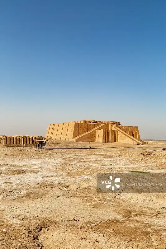وجد وولي هيكلًا هرميًا ضخمًا مستطيلًا يشير إلى الشمال الحقيقي، تبلغ أبعاد قاعدته 210 × 150 قدمًا (64 × 46 مترًا)، مبني بثلاثة مستويات من المدرجات، يقف في الأصل بين 70 × 100 قدم (21 × 30 مترًا). تؤدي ثلاثة سلالم ضخمة إلى بوابة في الطابق الأول من الشرفة. بعد ذلك، يرتفع درج آخر إلى شرفة ثانية تدعم منصة بُني عليها المعبد والشرفة النهائية بالأعلى.