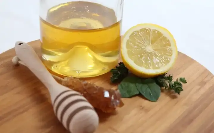 ملعقة عصير ليمون – ملعقة من العسل – ملعقة صغيرة من بيكربونات الصوديوم